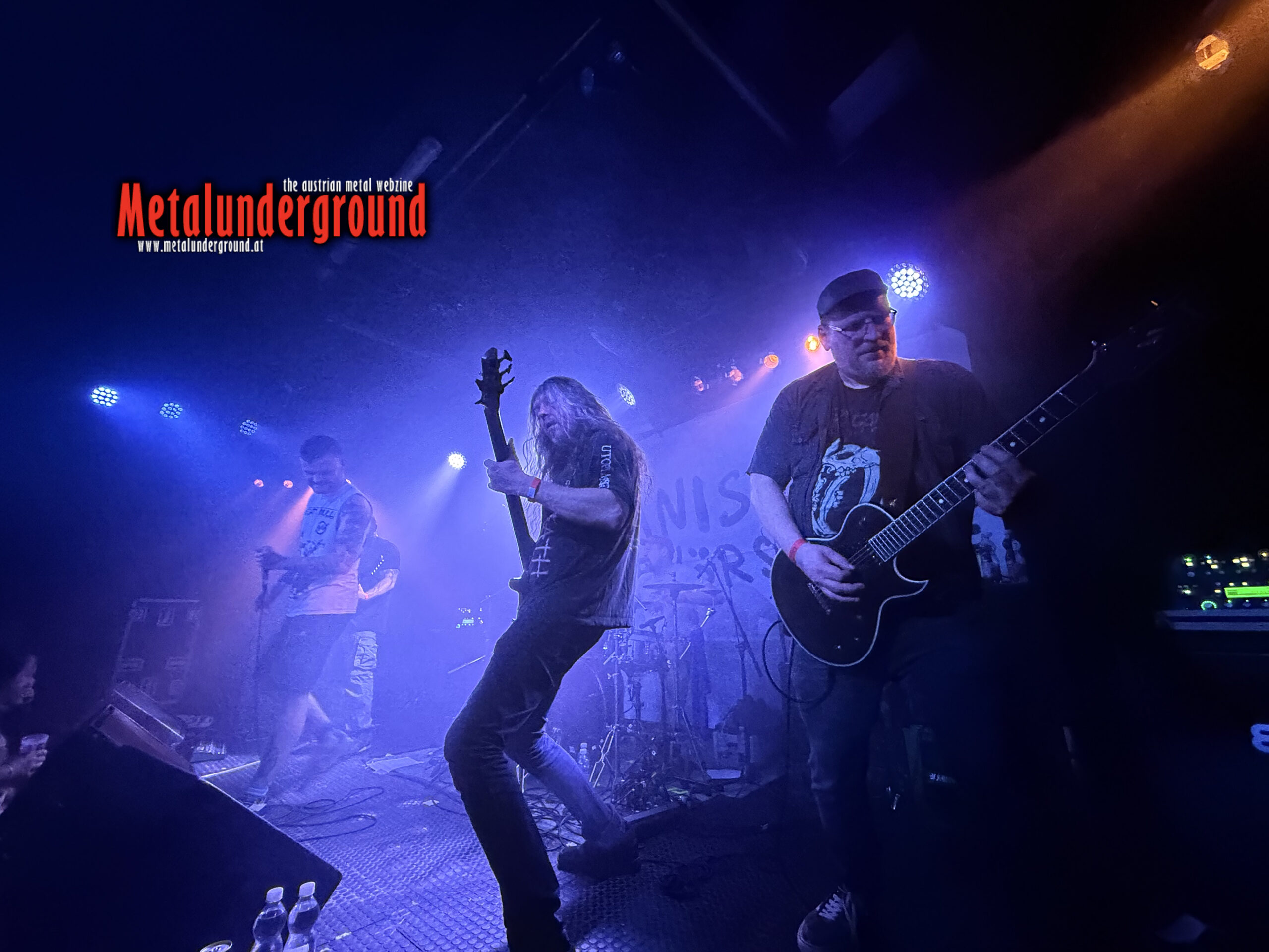 Der Einstieg ins Set erfolgte sehr direkt, mit einem soliden Rhythmus und der sympathisch lockeren Präsenz von Frontmann Engel Mayr, der zwischen den Songs scherzte und das Publikum unterhielt. Doch darüber hinaus überzeugte vor allem die Musik: kurze, sehr inspirierte Stücke, aggressiv und technisch zugleich. Während der Songs herrschte eine spürbar wütende Haltung, wie sie zu einem Grindcore-/Death-Metal-Konzert gehört. Die Vocals waren überzeugend, mit unterschiedlichen Ansätzen, die die gesellschaftskritischen Inhalte und den schwarzen Humor ihrer Musik selbstbewusst unterstrichen.