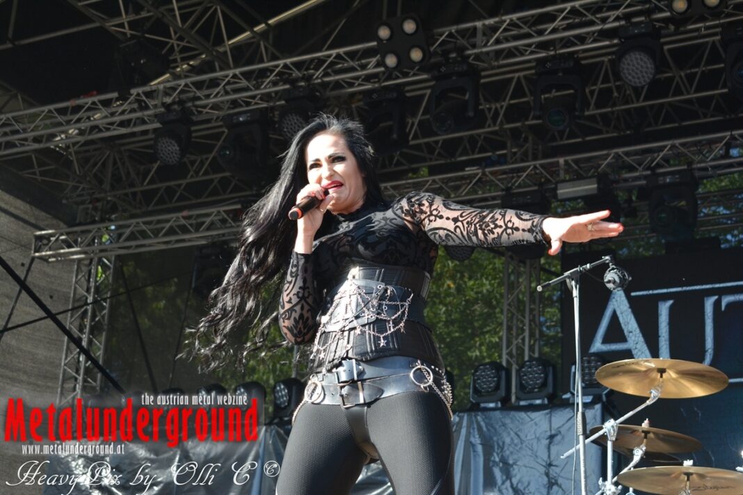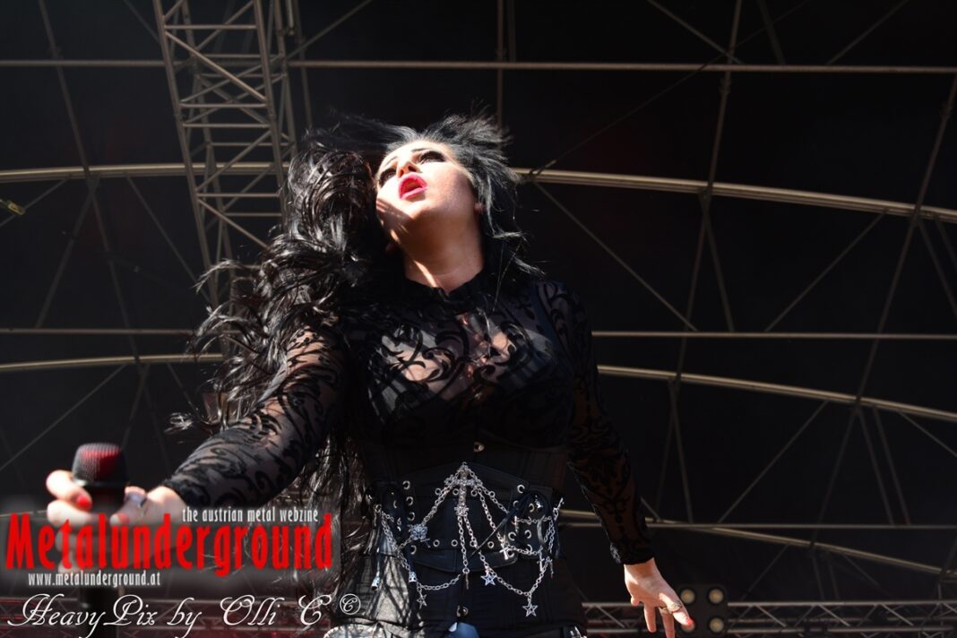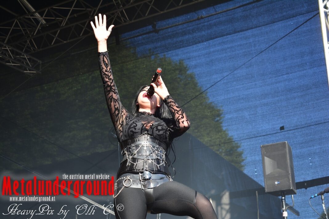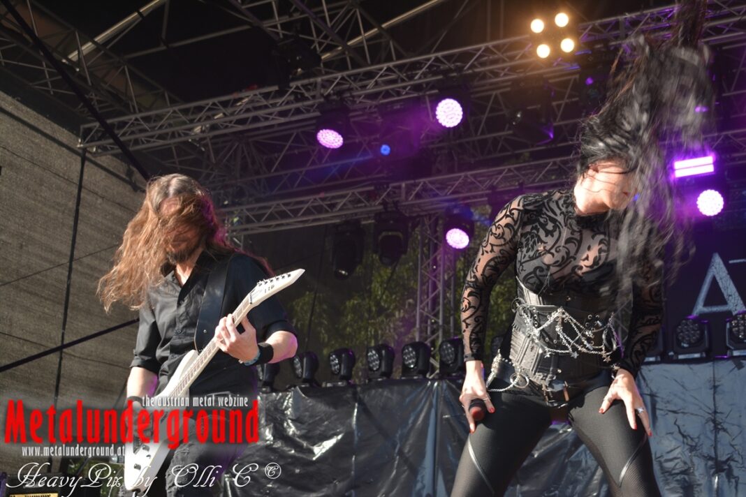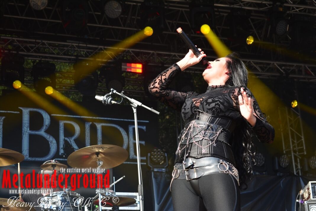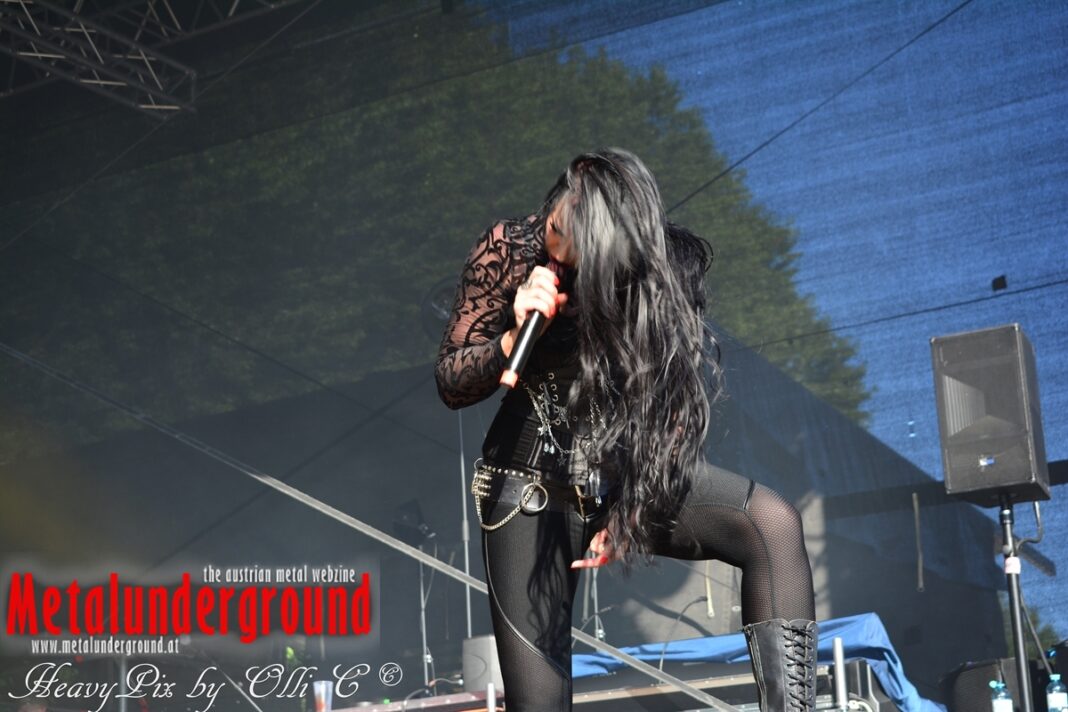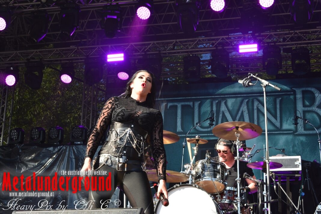 Es sind gefühlte 40 Grad Celsius und die brennende Hitze war fast unerträglich, jedoch ließen es sich die Metalheads trotz tropischen Temperaturen die Stimmung nicht verderben und feierten die female frontet Metal Band aus Wien ordentlich ab. Mit einem Set von 40 Minuten boten AUTUMN BRIDE eine fette Show. Eindeutig merkte man, dass die Band Spaß auf der Bühne hatte, wobei die Partylaune quasi auf das Publikum abfärbte. Es sind nicht nur Songs aus dem aktuellem Album „Bed Time Stories“ die AUTUMN BRIDE zum Besten gaben. Natürlich durften auch ihre Klassiker aus dem Debutalbum nicht fehlen und das Publikum ging bei „Guardian Angel“ voll ab. Leider war dieser Auftritt auch der letzte von mit ihrem Bassisten Ken, da dieser die Band verlassen wird.
