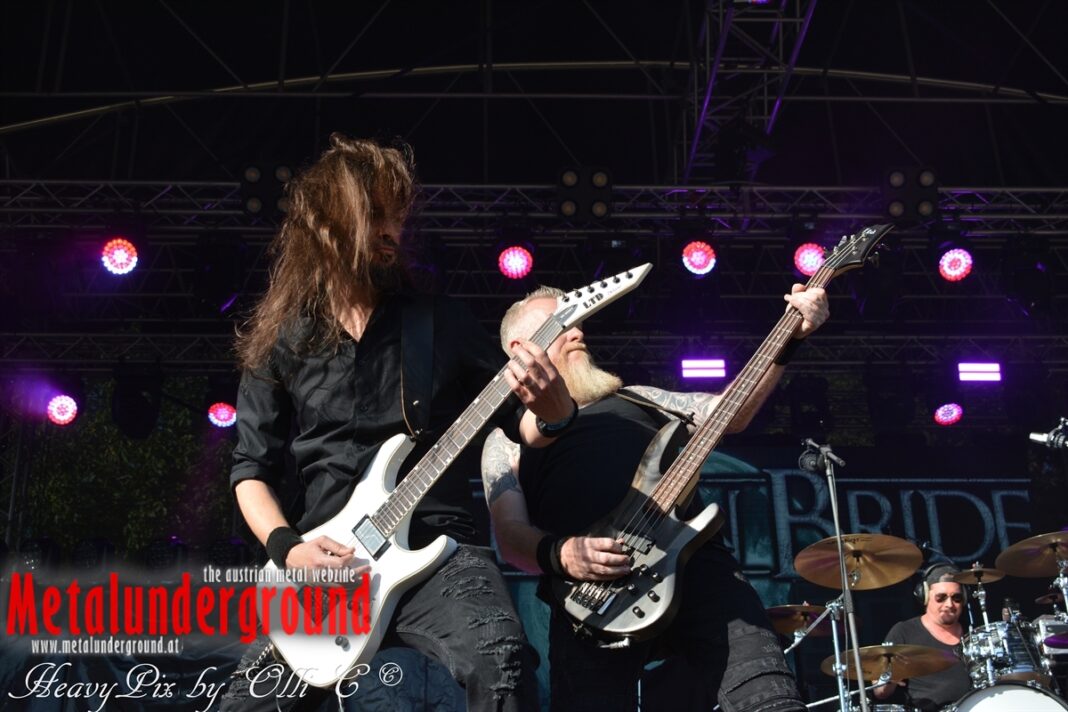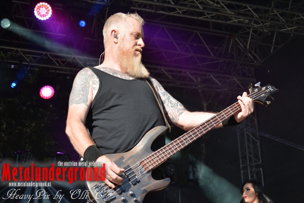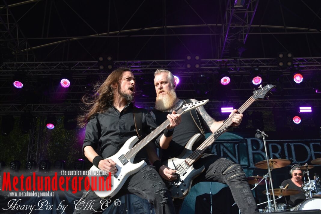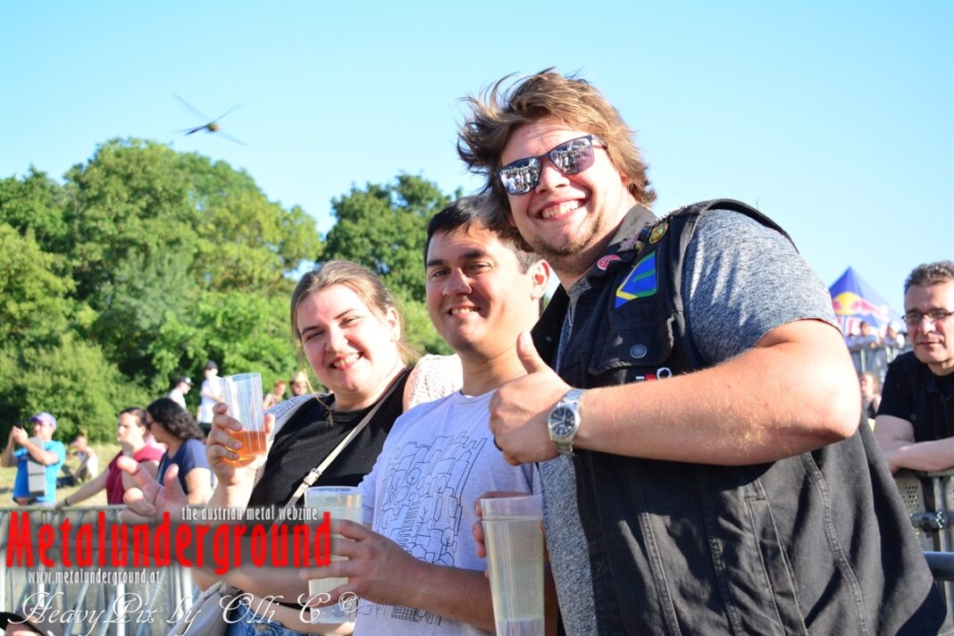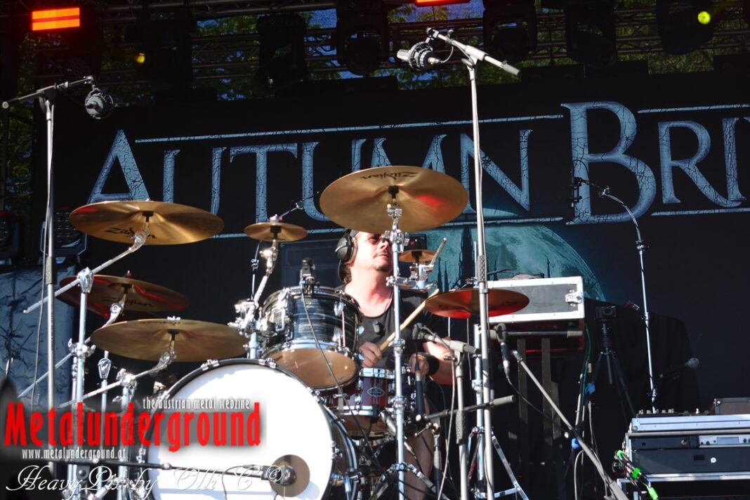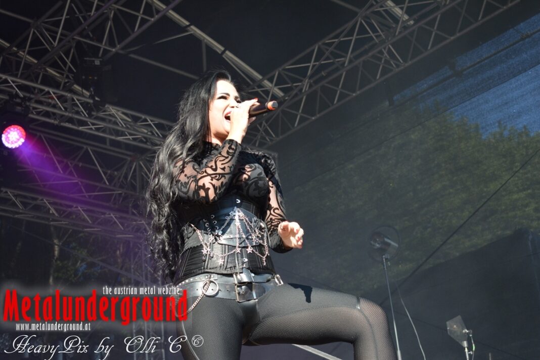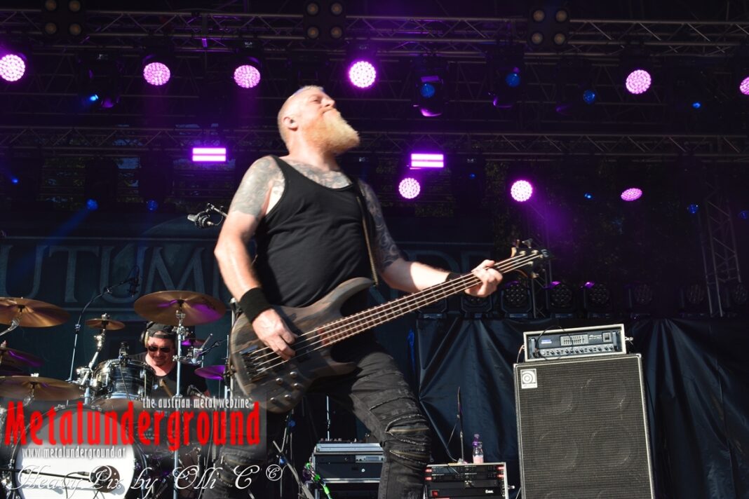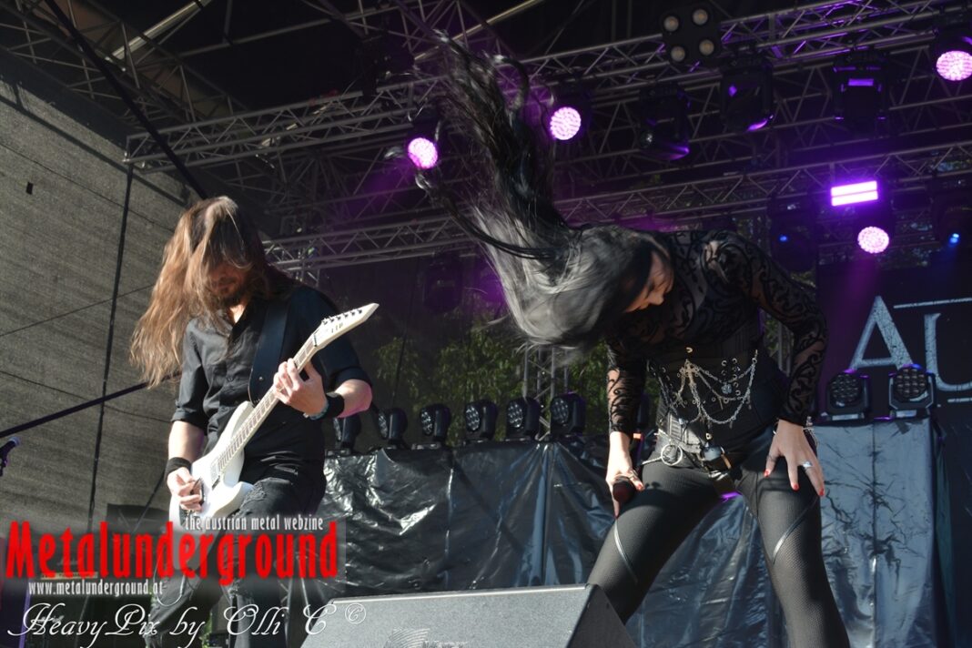Es sind gefühlte 40 Grad Celsius und die brennende Hitze war fast unerträglich, jedoch ließen es sich die Metalheads trotz tropischen Temperaturen die Stimmung nicht verderben und feierten die female frontet Metal Band aus Wien ordentlich ab. Mit einem Set von 40 Minuten boten AUTUMN BRIDE eine fette Show. Eindeutig merkte man, dass die Band Spaß auf der Bühne hatte, wobei die Partylaune quasi auf das Publikum abfärbte. Es sind nicht nur Songs aus dem aktuellem Album „Bed Time Stories“ die AUTUMN BRIDE zum Besten gaben. Natürlich durften auch ihre Klassiker aus dem Debutalbum nicht fehlen und das Publikum ging bei „Guardian Angel“ voll ab. Leider war dieser Auftritt auch der letzte von mit ihrem Bassisten Ken, da dieser die Band verlassen wird.