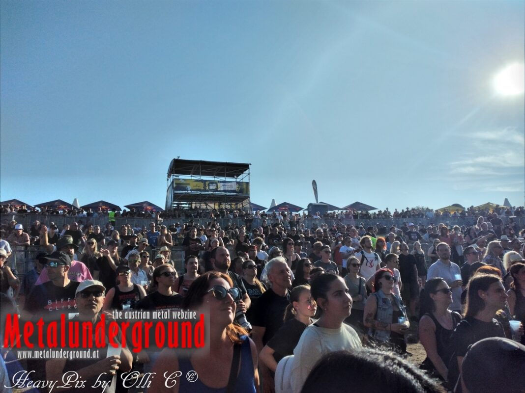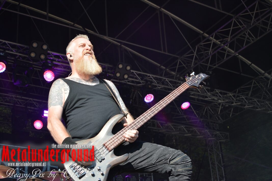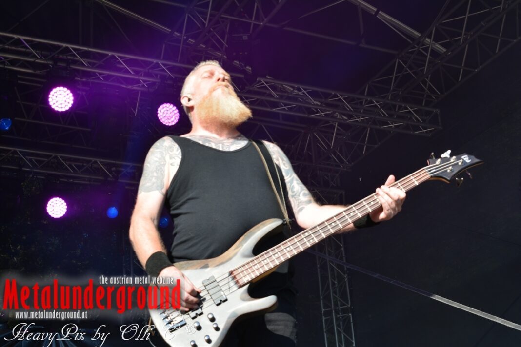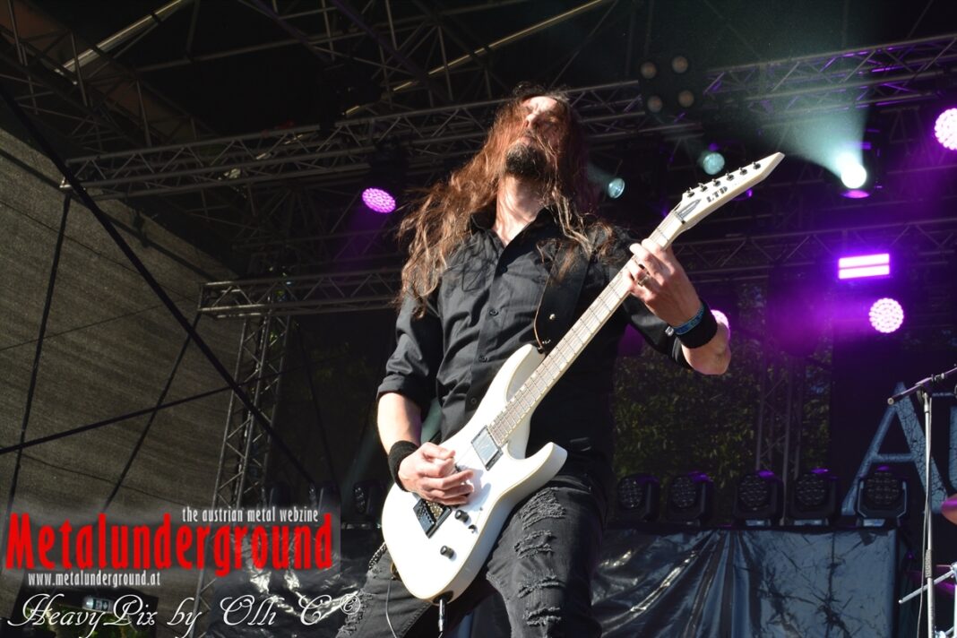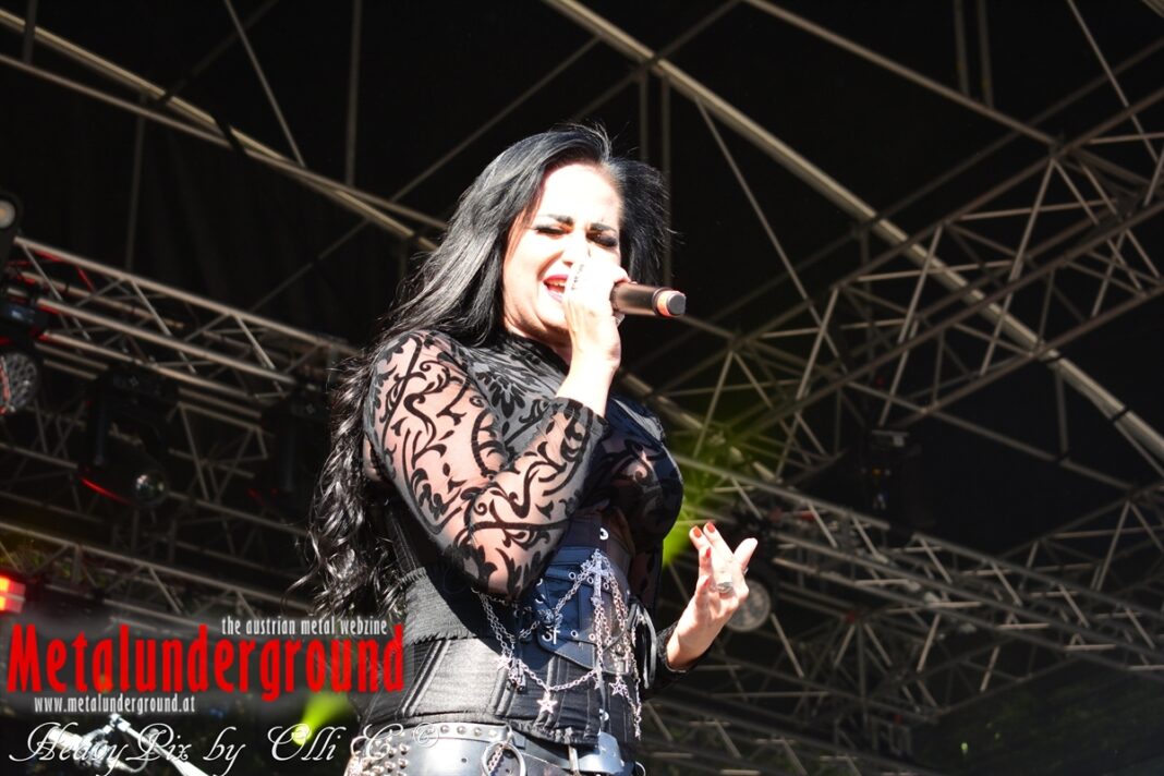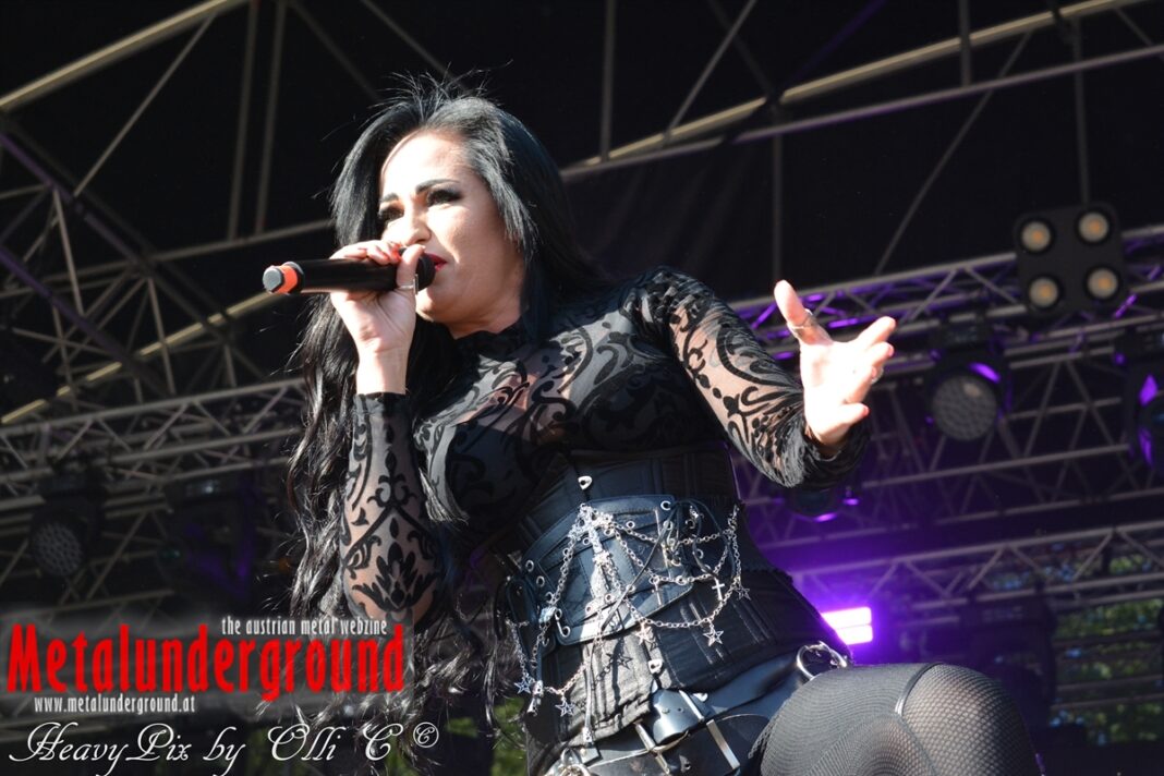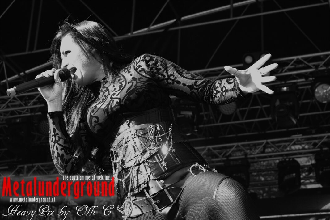 Es sind gefühlte 40 Grad Celsius und die brennende Hitze war fast unerträglich, jedoch ließen es sich die Metalheads trotz tropischen Temperaturen die Stimmung nicht verderben und feierten die female frontet Metal Band aus Wien ordentlich ab. Mit einem Set von 40 Minuten boten AUTUMN BRIDE eine fette Show. Eindeutig merkte man, dass die Band Spaß auf der Bühne hatte, wobei die Partylaune quasi auf das Publikum abfärbte. Es sind nicht nur Songs aus dem aktuellem Album „Bed Time Stories“ die AUTUMN BRIDE zum Besten gaben. Natürlich durften auch ihre Klassiker aus dem Debutalbum nicht fehlen und das Publikum ging bei „Guardian Angel“ voll ab. Leider war dieser Auftritt auch der letzte von mit ihrem Bassisten Ken, da dieser die Band verlassen wird.