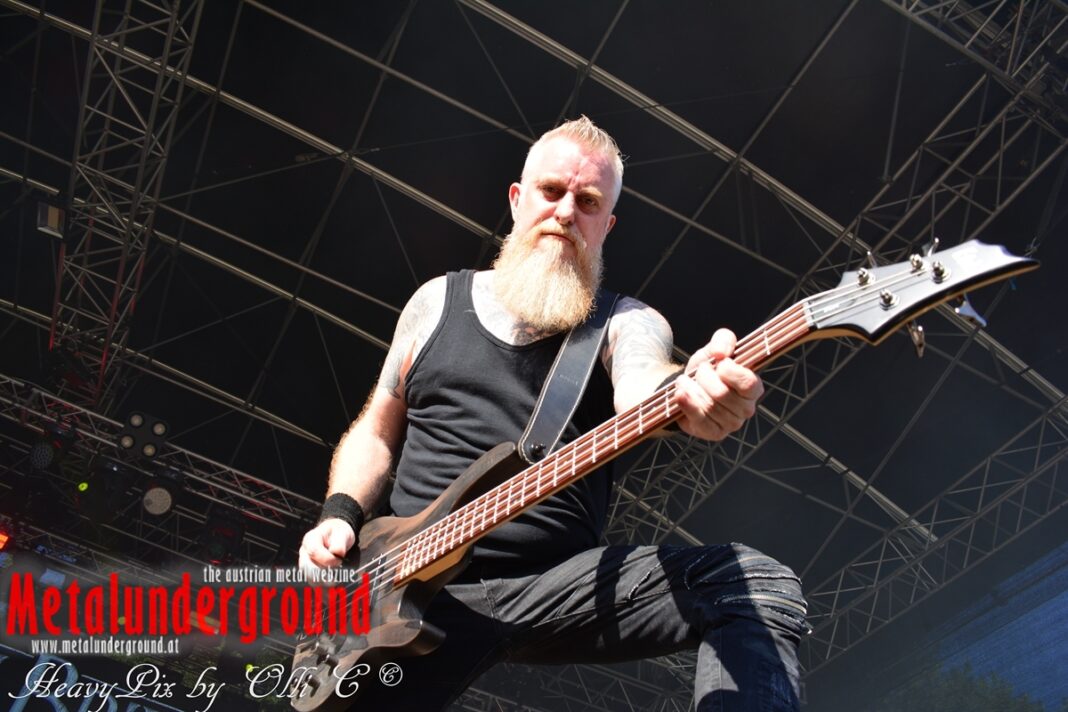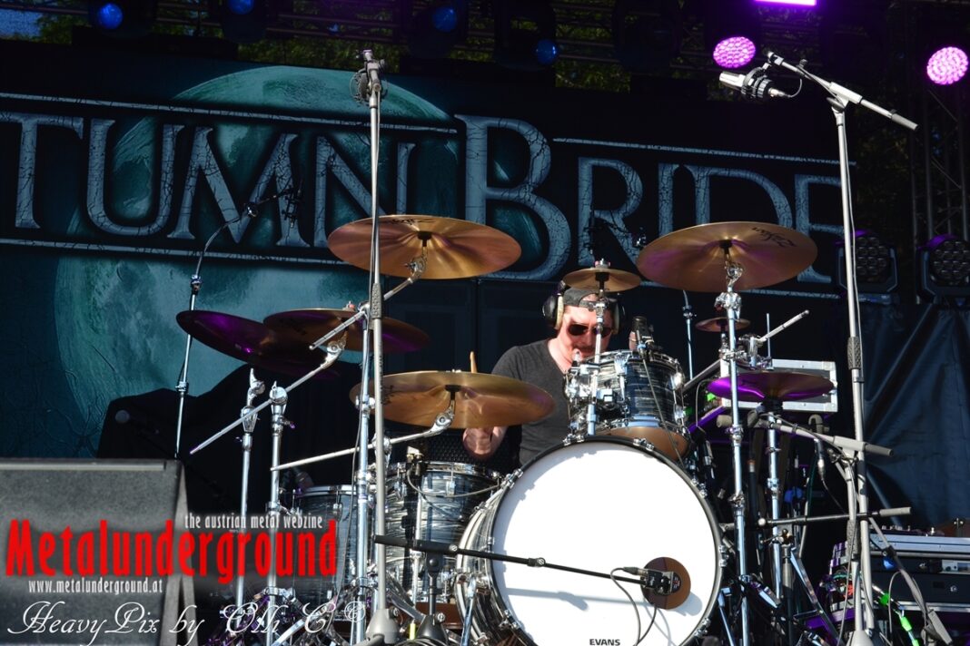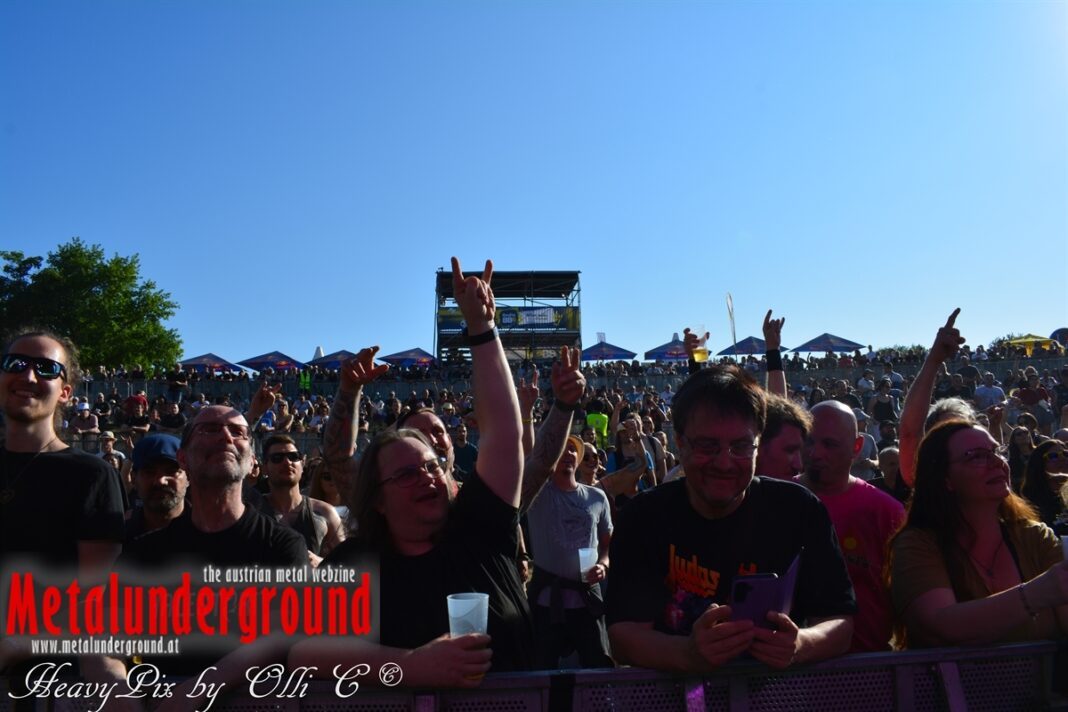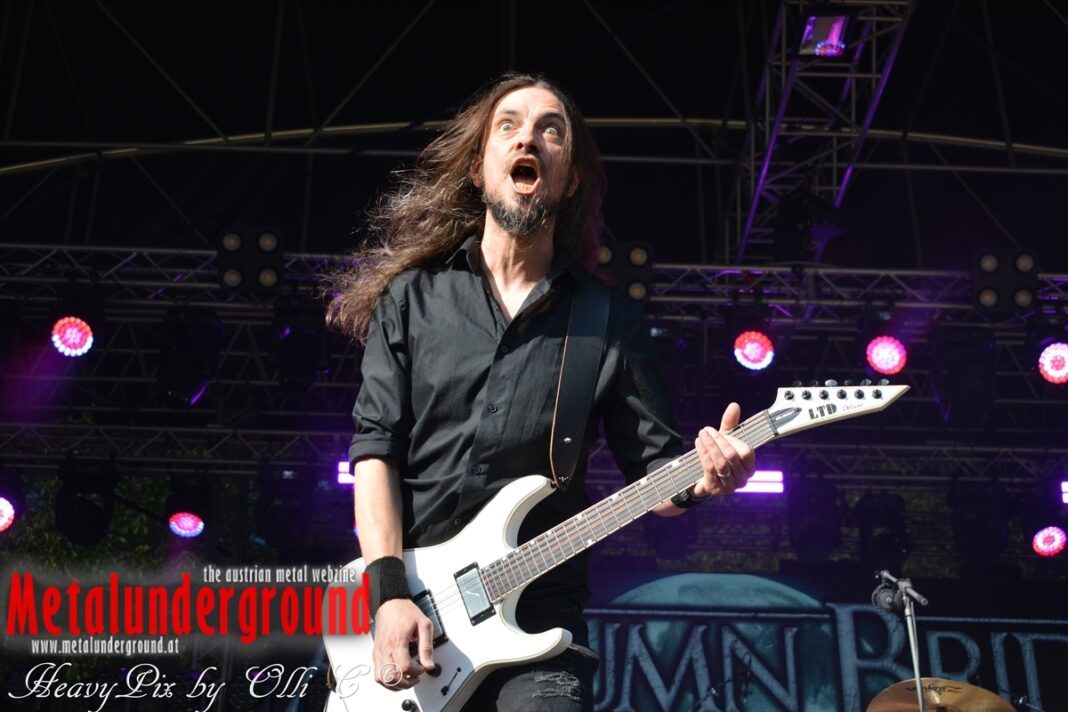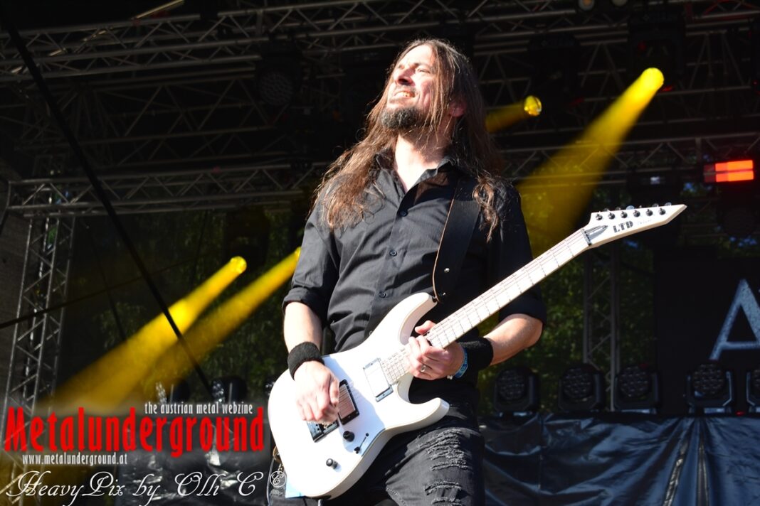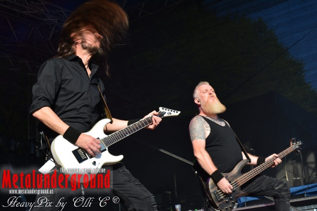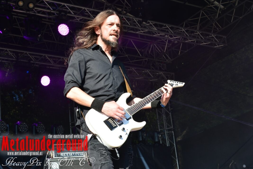 Es sind gefühlte 40 Grad Celsius und die brennende Hitze war fast unerträglich, jedoch ließen es sich die Metalheads trotz tropischen Temperaturen die Stimmung nicht verderben und feierten die female frontet Metal Band aus Wien ordentlich ab. Mit einem Set von 40 Minuten boten AUTUMN BRIDE eine fette Show. Eindeutig merkte man, dass die Band Spaß auf der Bühne hatte, wobei die Partylaune quasi auf das Publikum abfärbte. Es sind nicht nur Songs aus dem aktuellem Album „Bed Time Stories“ die AUTUMN BRIDE zum Besten gaben. Natürlich durften auch ihre Klassiker aus dem Debutalbum nicht fehlen und das Publikum ging bei „Guardian Angel“ voll ab. Leider war dieser Auftritt auch der letzte von mit ihrem Bassisten Ken, da dieser die Band verlassen wird.