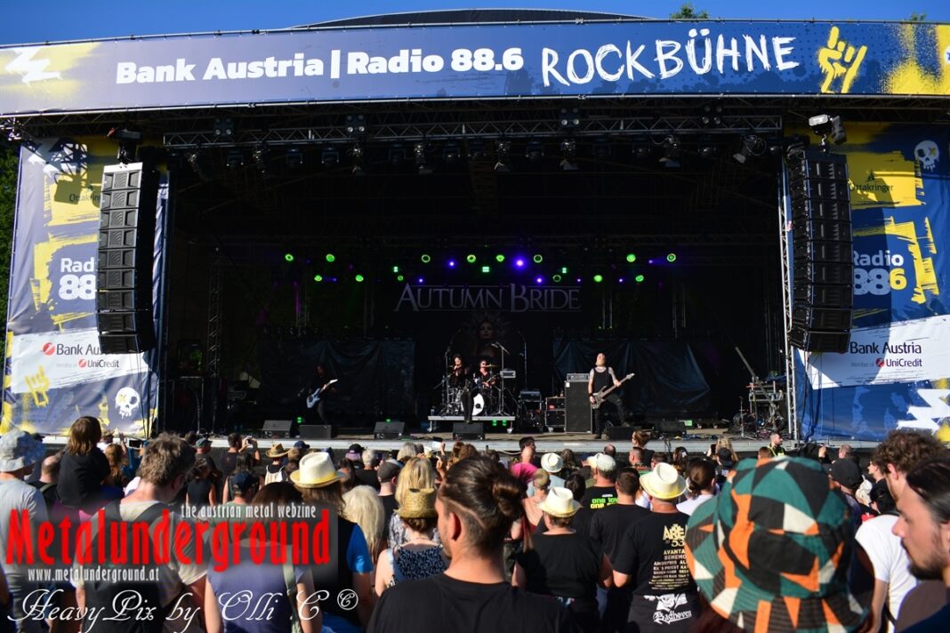 Um 18:00 Uhr konnten letztendlich AUTUMN BRIDE ihr Set dem gespannten Publikum auf der Donauinsel präsentieren.