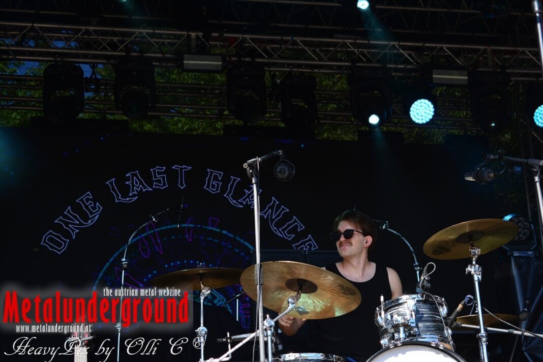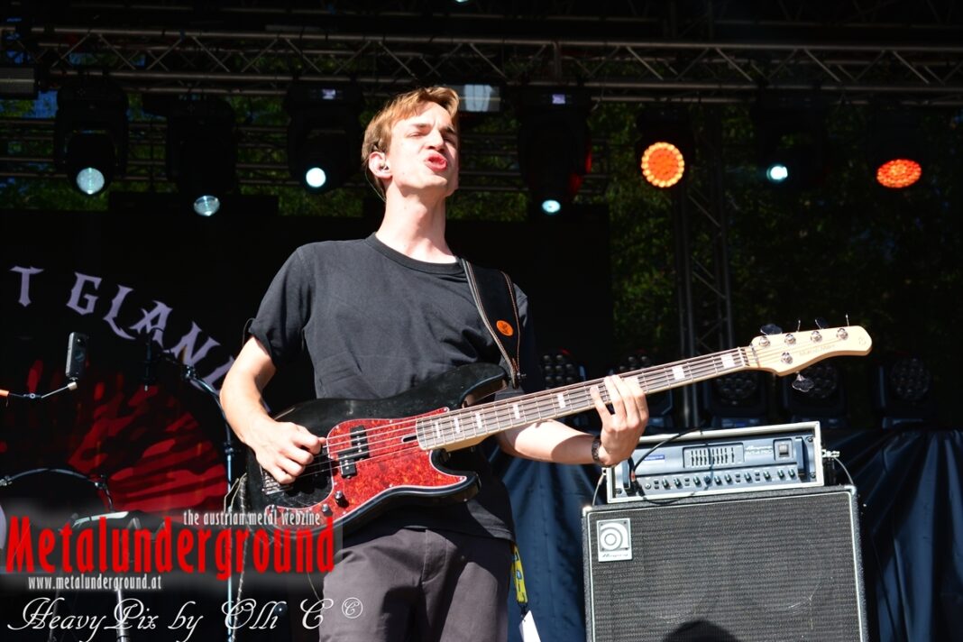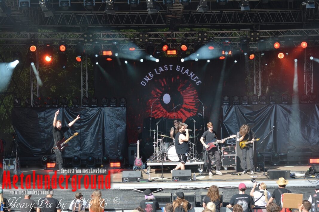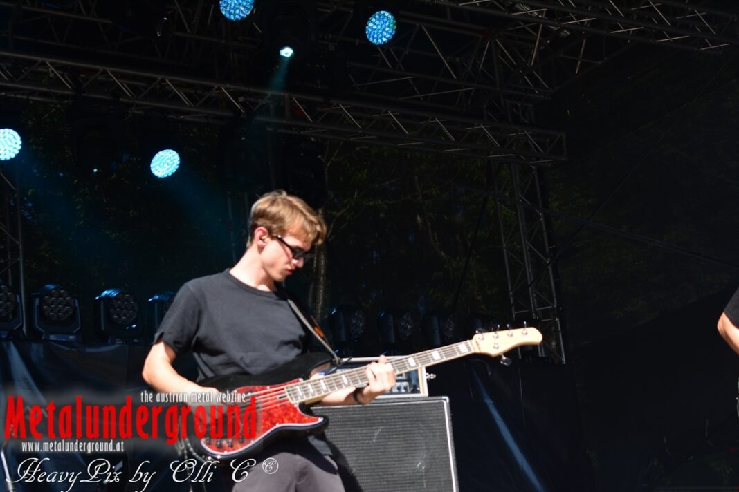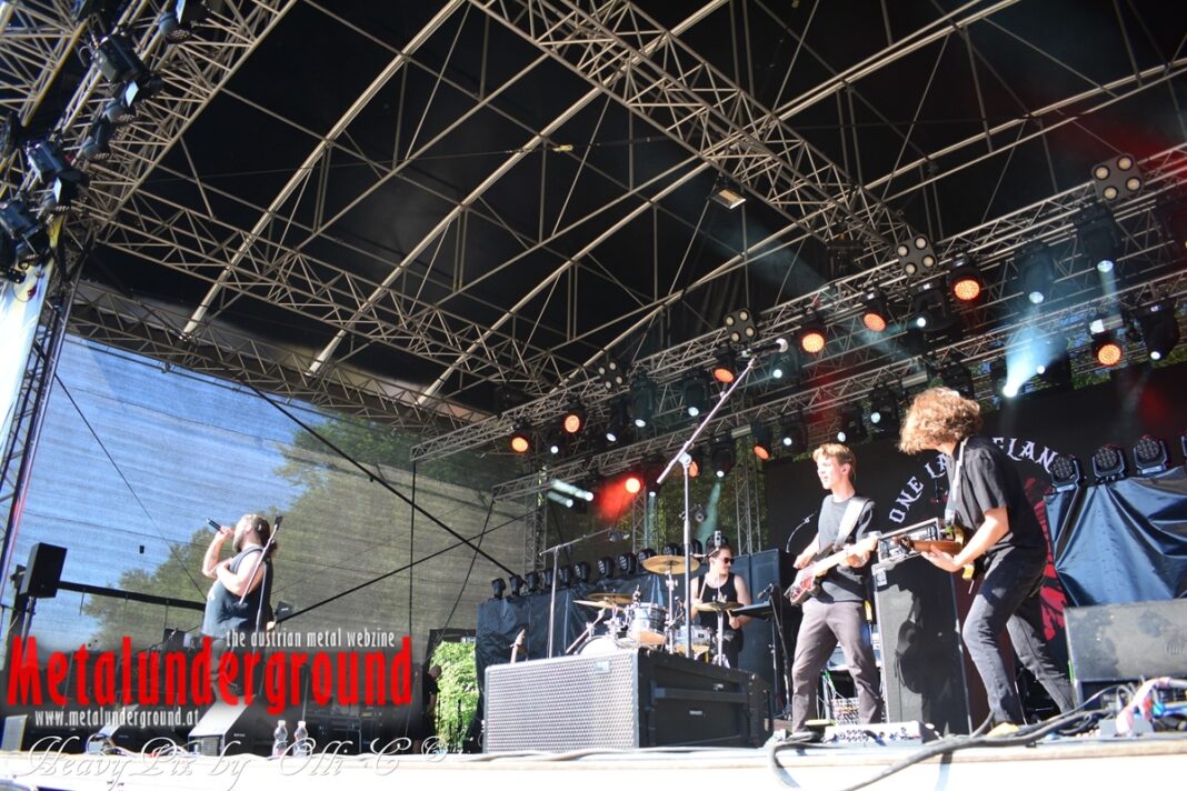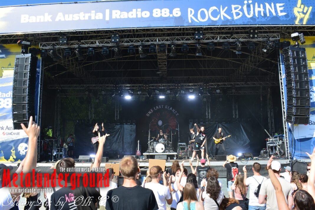Langsam aber sicher füllte sich die Rockstage immer mehr, ONE LAST GLANCE betraten um 17:00 Uhr die Bühne und performten ihr Set bei brütender Hitze. One Last Glance ist eine 2016 in Linz gegründete Band. Ihre stark von Grunge beeinflusste Musik vereinigt sich in spannendster Weise mit Metal, Punk und Rock. Der durch Gitarren, Bass und Schlagzeug geprägte Sound ist heavy und wird von manchmal hartem, oft aber auch sehr melodiösem Gesang abgerundet. Die fünf jungen Musiker teilten sich bereits Bühnen mit Acts wie Kaiser Franz Josef und Krautschädl.