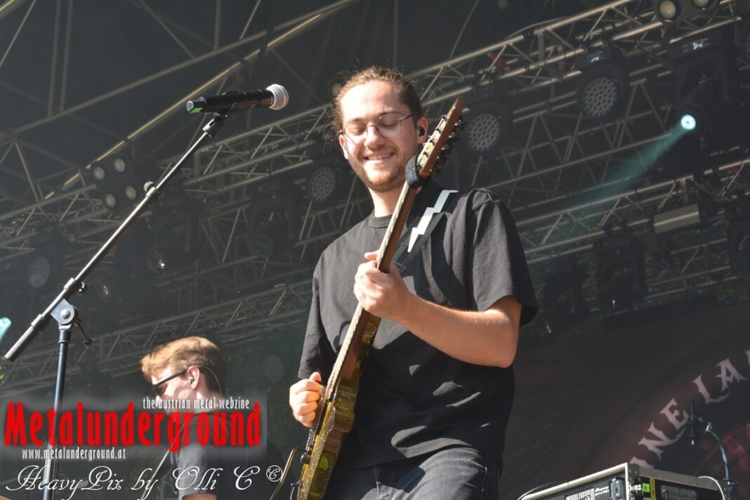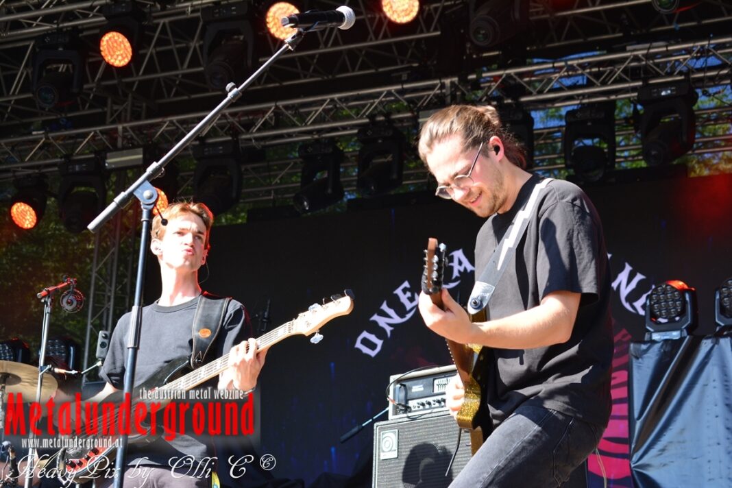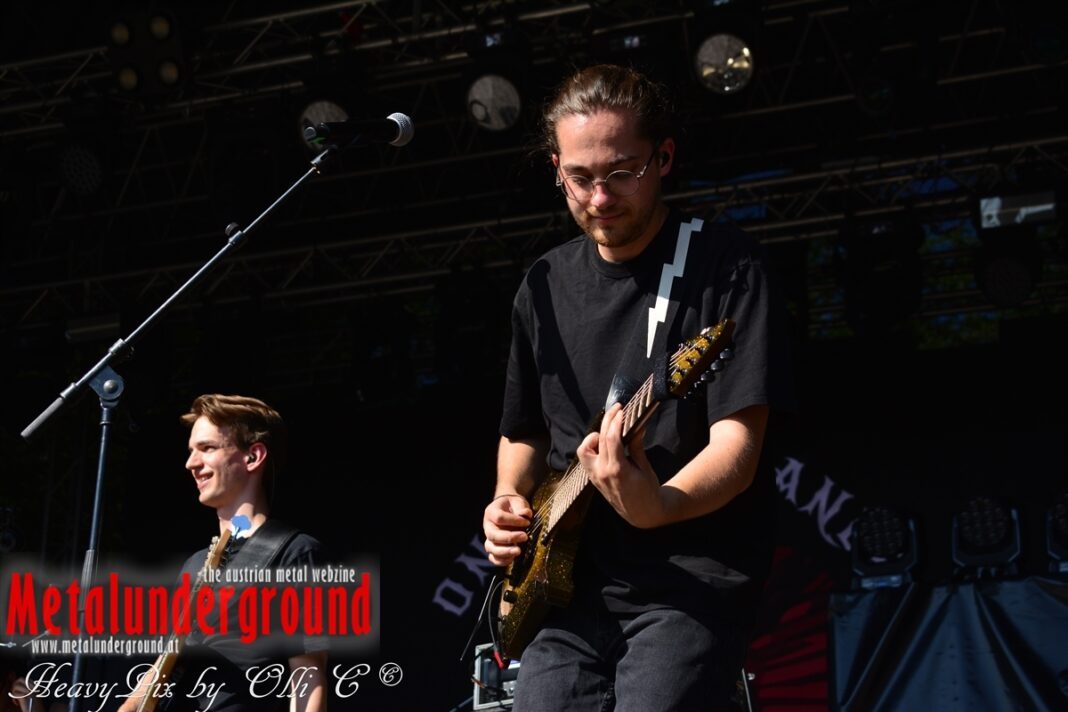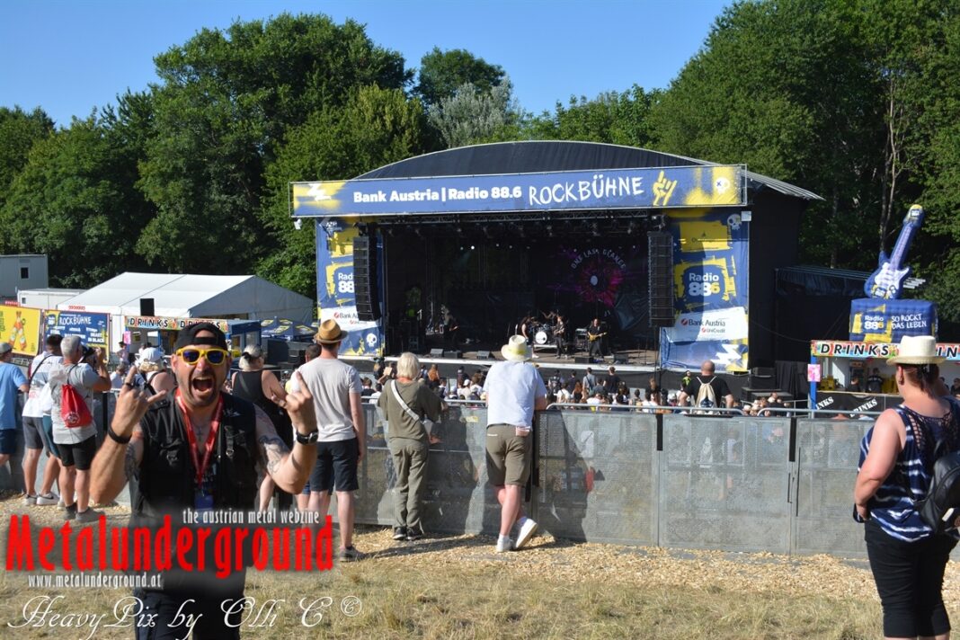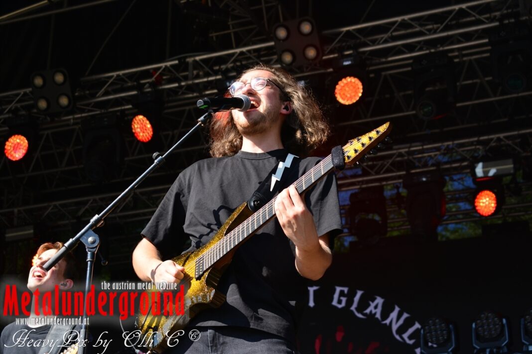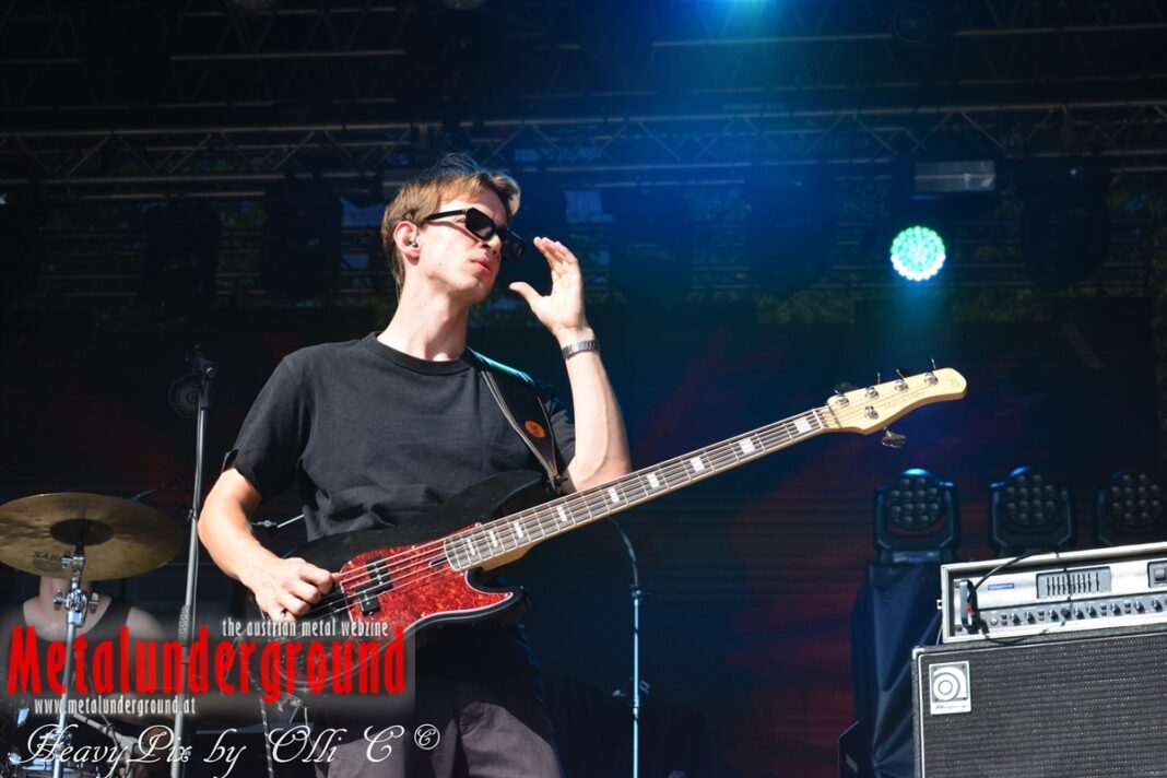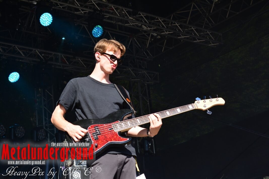 Langsam aber sicher füllte sich die Rockstage immer mehr, ONE LAST GLANCE betraten um 17:00 Uhr die Bühne und performten ihr Set bei brütender Hitze. One Last Glance ist eine 2016 in Linz gegründete Band. Ihre stark von Grunge beeinflusste Musik vereinigt sich in spannendster Weise mit Metal, Punk und Rock. Der durch Gitarren, Bass und Schlagzeug geprägte Sound ist heavy und wird von manchmal hartem, oft aber auch sehr melodiösem Gesang abgerundet. Die fünf jungen Musiker teilten sich bereits Bühnen mit Acts wie Kaiser Franz Josef und Krautschädl.