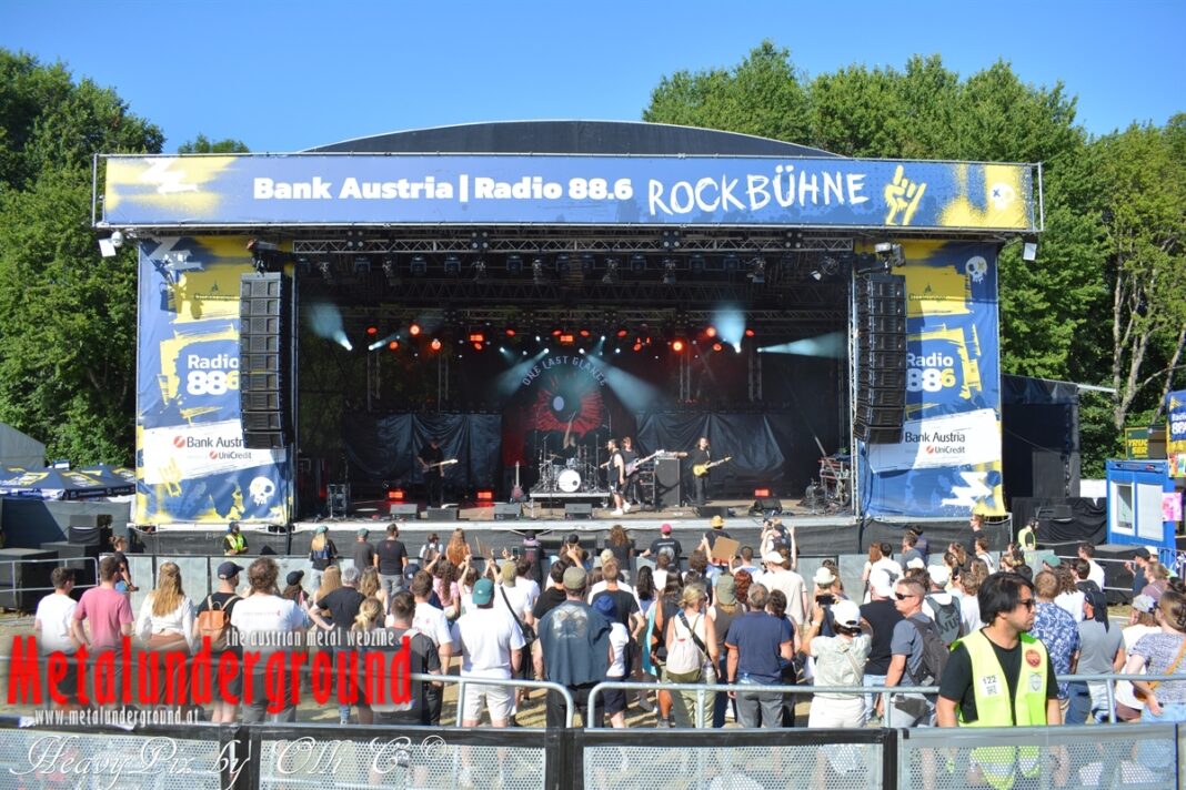 Strahlender Sonnenschein, freier Eintritt, Dutzende Live-Acts und ein buntes Programm waren zum Schulschlusswochenende auf dem Wiener Donauinselfest angesagt. Das Donauinselfest ist das größte Freiluft-Festival des Kontinents und bot dieses Jahr auch etliche Rock und Metalacts. Neben STEEL PANTHER und J.B.O am Freitag, geigten auch ONE LAST GLANCE und AUTUMN BRIDE am Samstag auf der 88.6 Rockbühne auf.