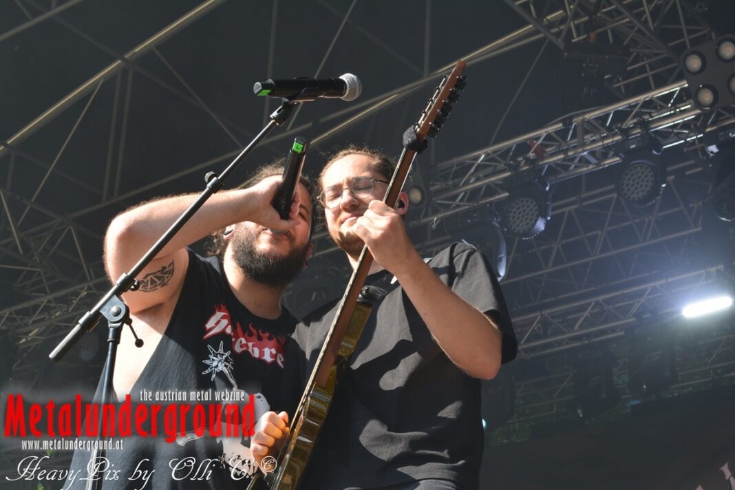 Um 15:45 startete am Samstag der erste Live Act CAMOUFLASH auf der besagten Stage. CAMOUFLASH ist eine aus Oberösterreich stammende Bundesheerband, die Rock Songs mit traditionellen „Rockinstrumenten“ und Blasinstrumenten kombiniert und covert. Klingt vorerst eigenartig, war aber ein perfekter Auftakt für einen fetten Rock/Metal- Samstag.