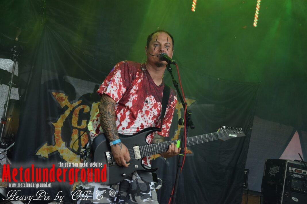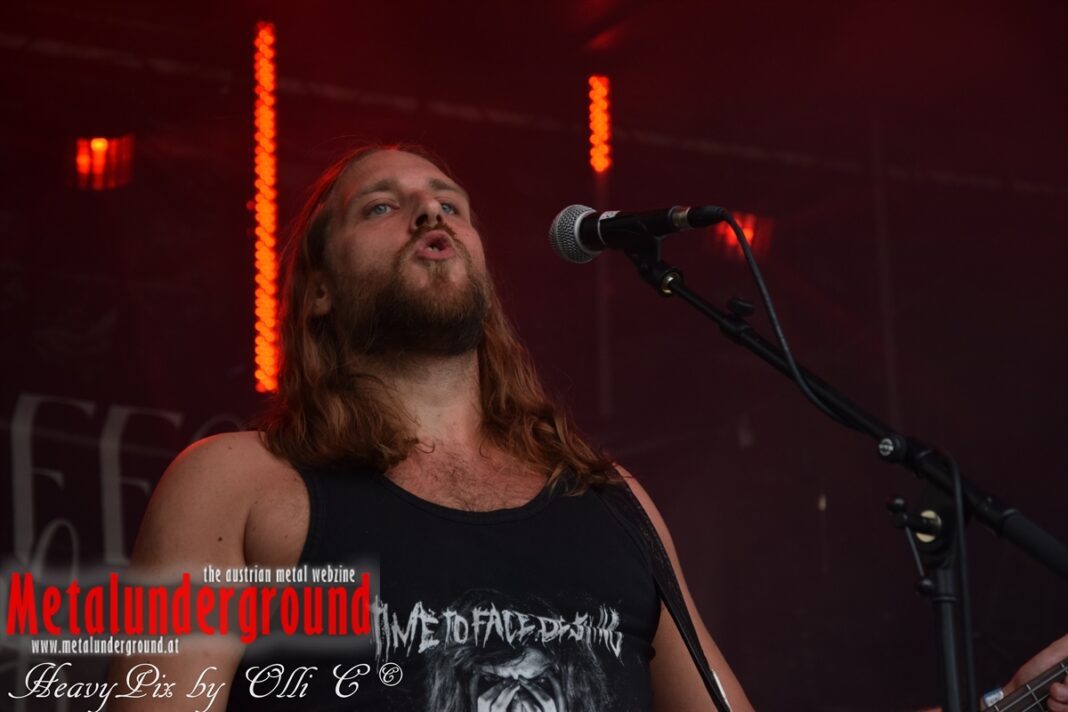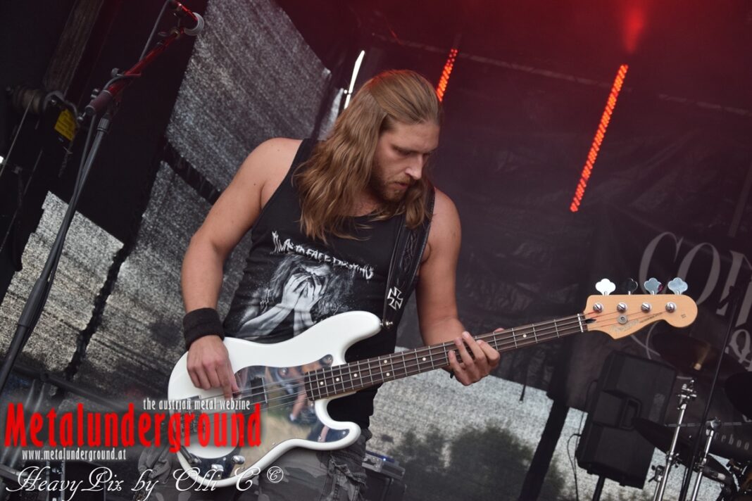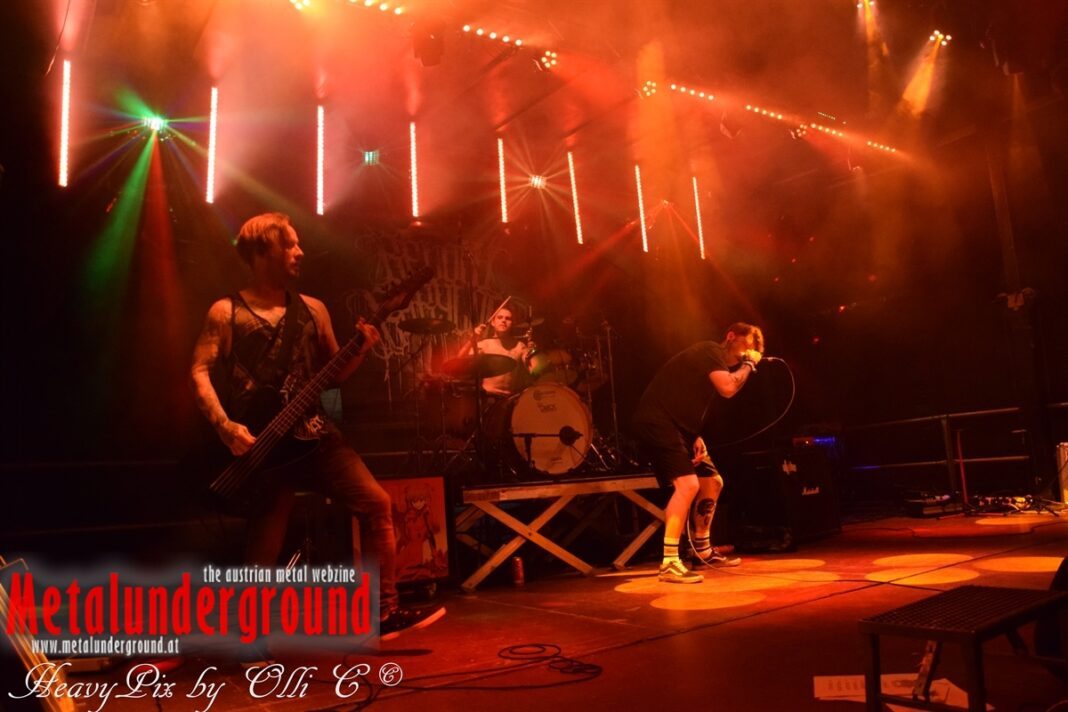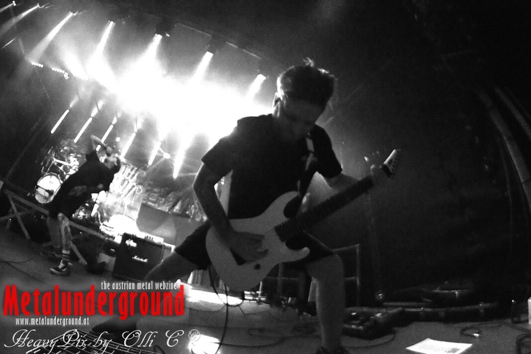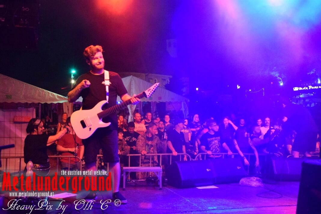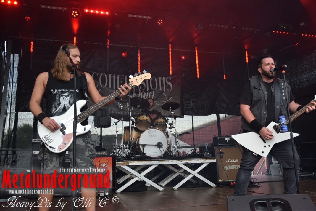 Die aus Wr. Neustadt stammende Band CONFESSIONS OF PAIN betritt nach einer kurzen Umbauphase die Bühne und präsentierte ihr Set. Garniert sind die Songs mit einem klaren, modernen Sound, der jedoch trotzdem die nötigen Ecken und Kanten besitzt, um den modernen, groovenden Death Metal einen feinen Touch verleiht.