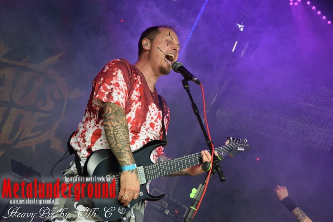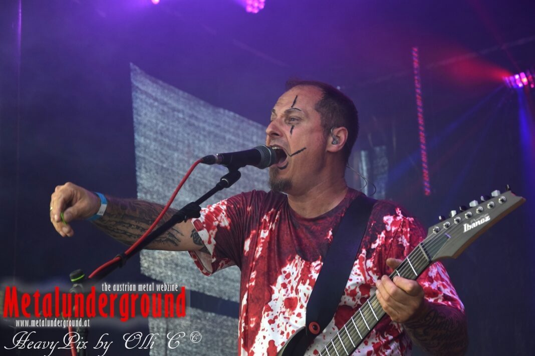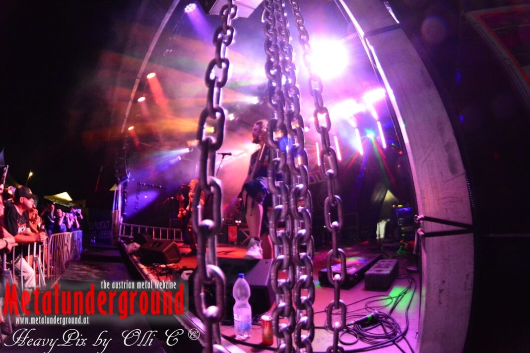 Ein kurzer Regenschauer konnte dem Tages Line Up und dem Timing nichts antun und PAIN IS starteten ihr Set Programm gemäß. Nach 2-3 Songs im Regen, krochen die letzten Metalheads „aus Zucker“ aus dem Trockenen wieder raus und befüllten wieder Front of Stage.