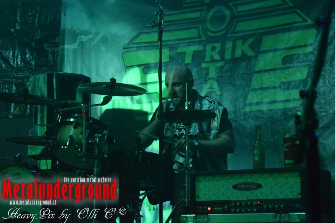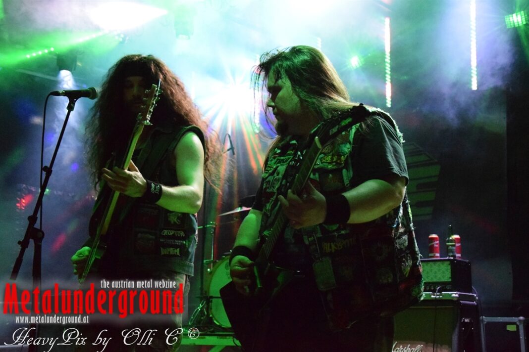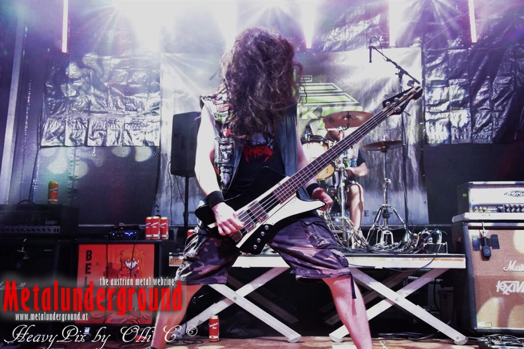 Die Headliner des Tages hießen MORTAL STRIKE. Die Wiener Thrash – Institution MORTAL STRIKE muss man nicht mehr näher bringen – MORTAL STRIKE kennt man, da sie schon auf etlichen großen Bühnen im In- und Ausland performten. Ihr fetter Thrash lockte auch noch nach 15 Bieren die letzten Kuttenträger von der Bar und bescherten ein Headbanggewitter. Als kleines Bonus gab es gemeinsam mit RAVENOUS einen METALLICA Klassiker.