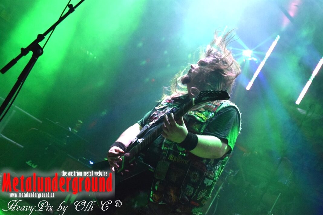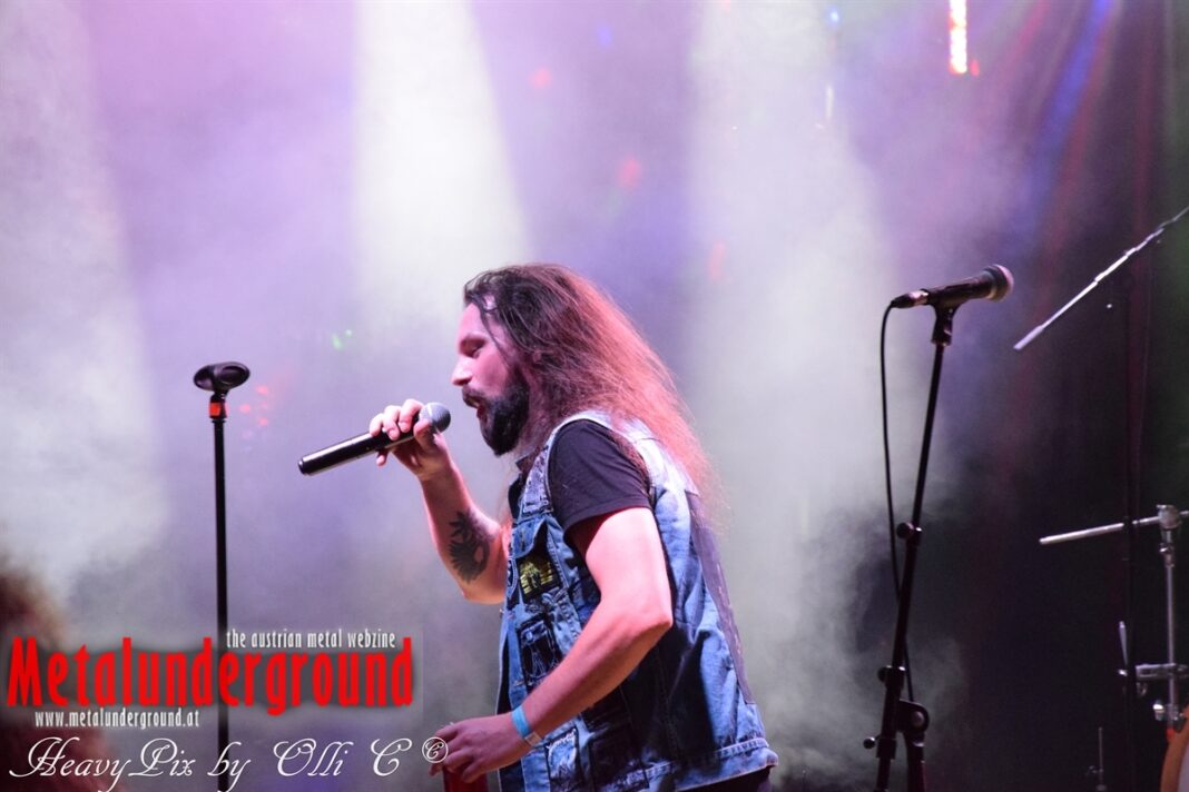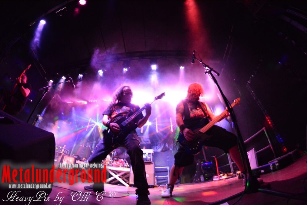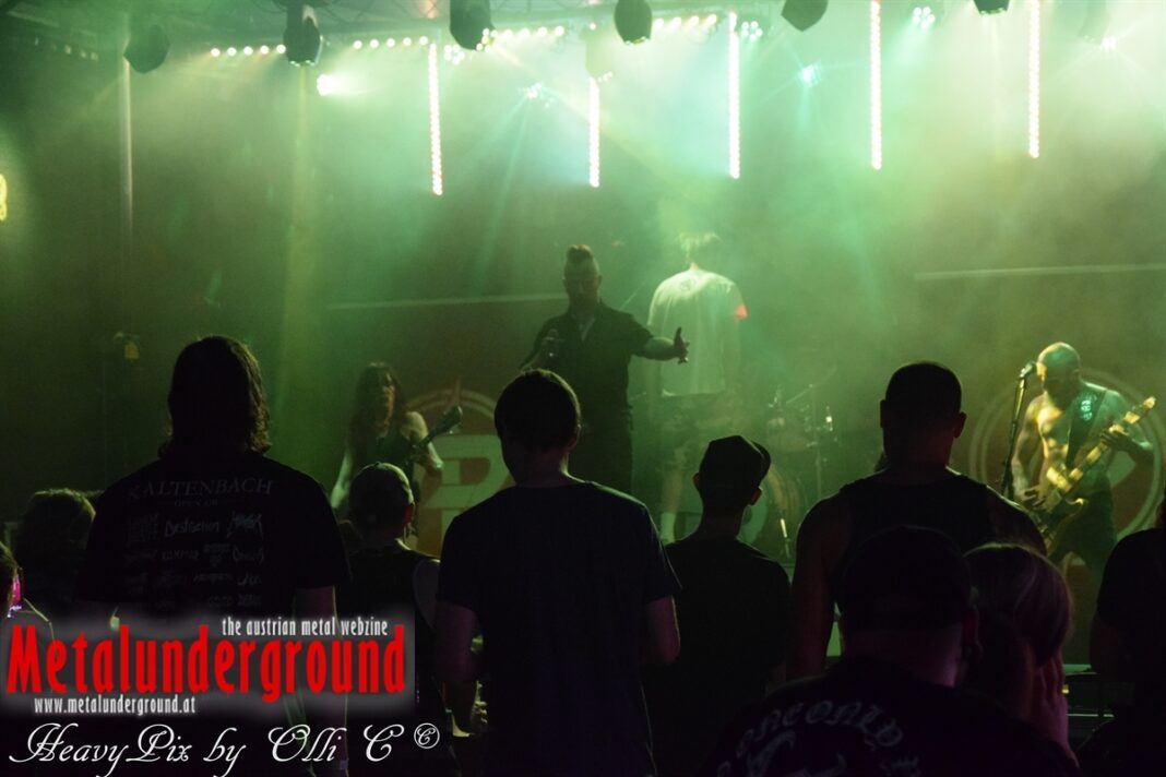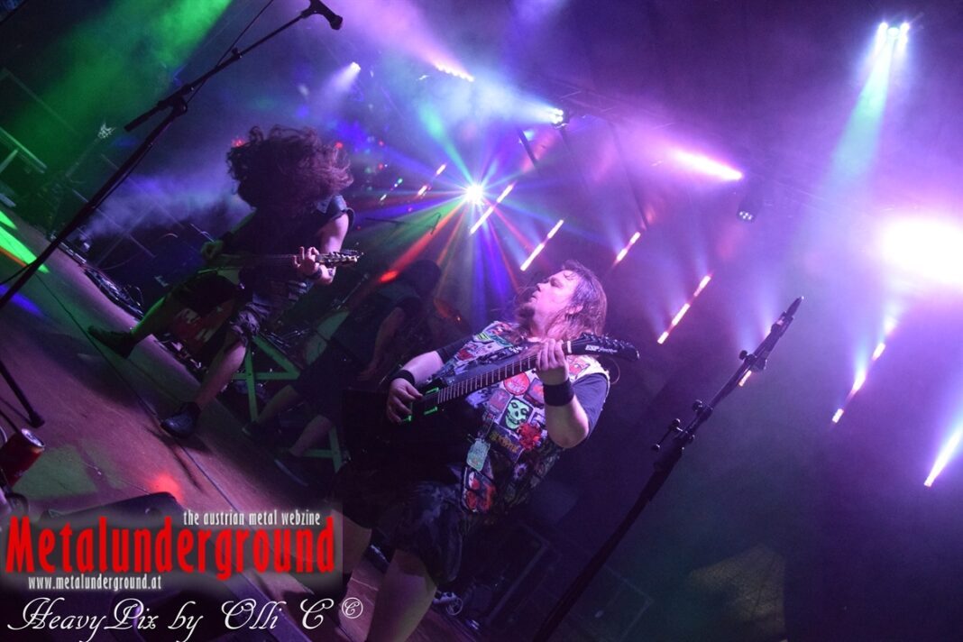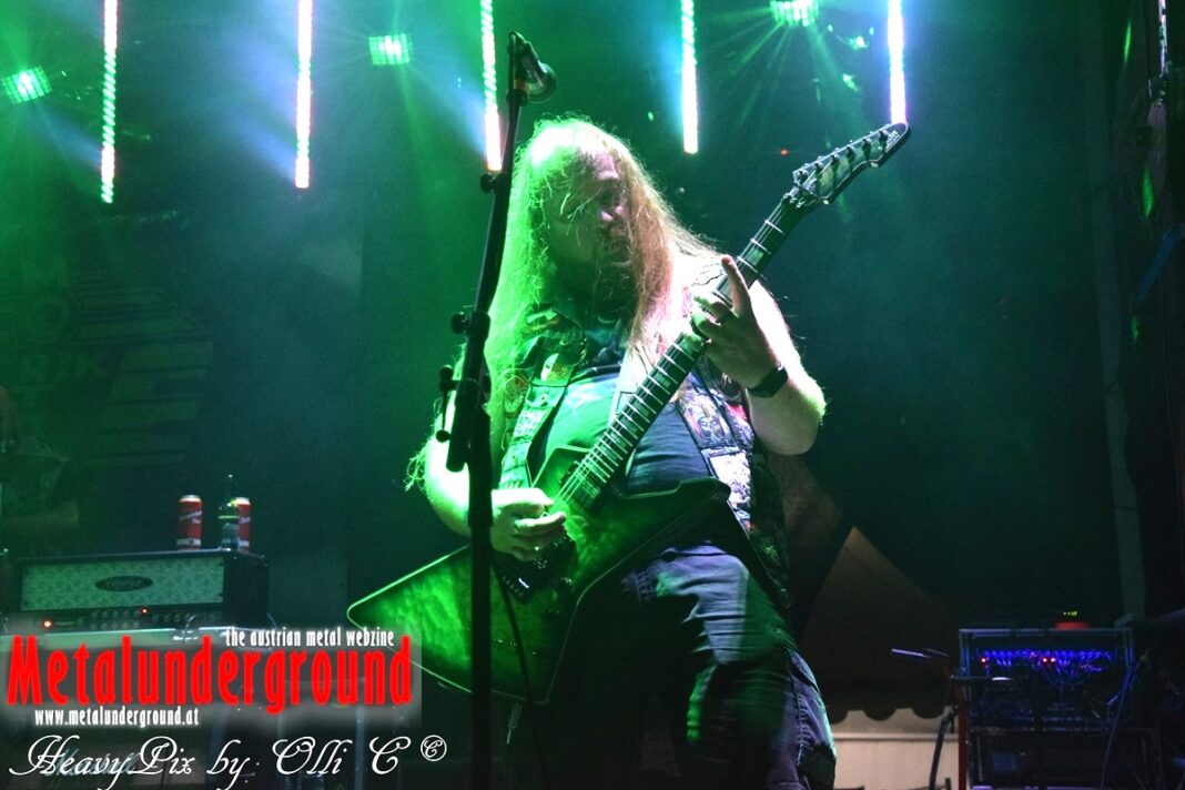 Zur Primetime und vor einem gefülltem Publikum, jedoch ohne Drummer, konnten die „Lokalheroes“ RAVENOUS ihr Set aus Thrash `n Speed präsentieren. Auch wenn es nur eingespielte Drums waren, konnten RAVENOUS auf aller Linie überzeugen und hatten das Publikum voll im Griff. Tolle Show.