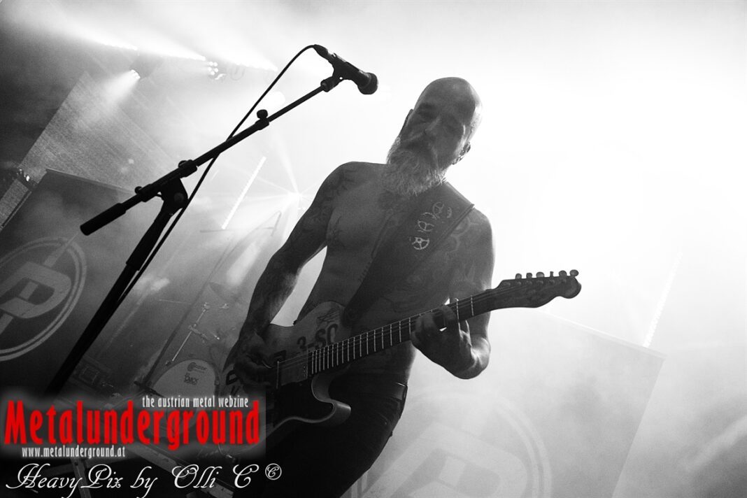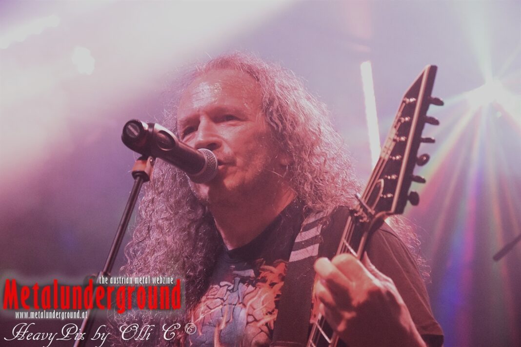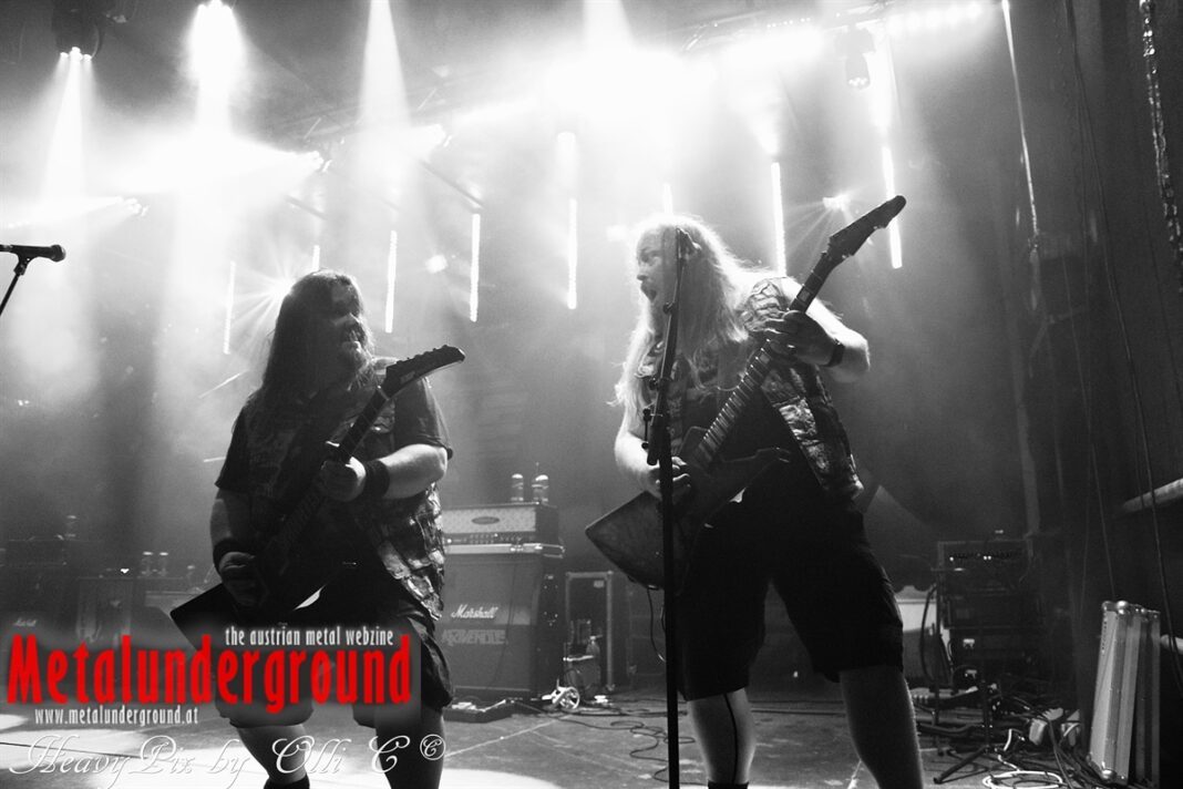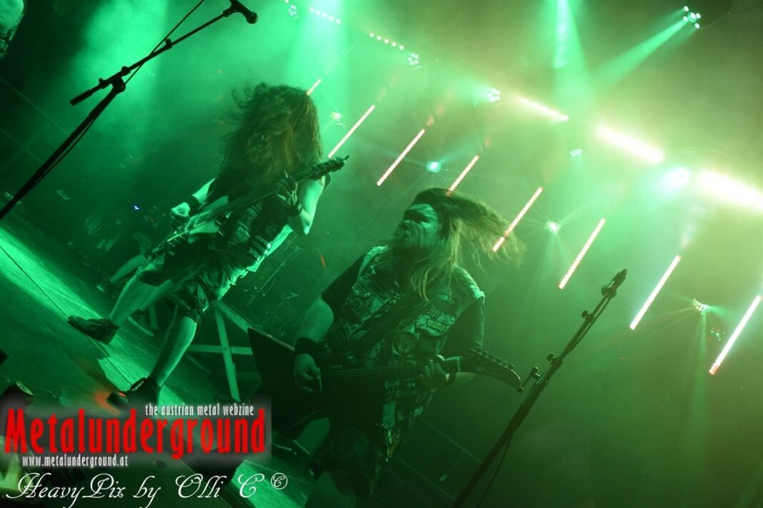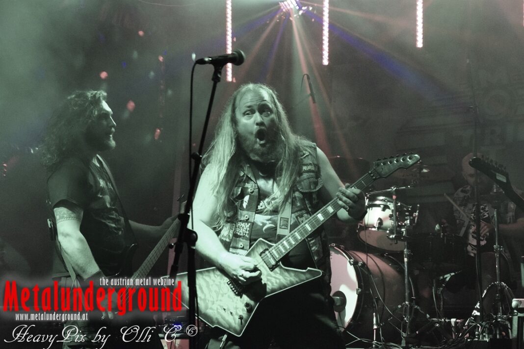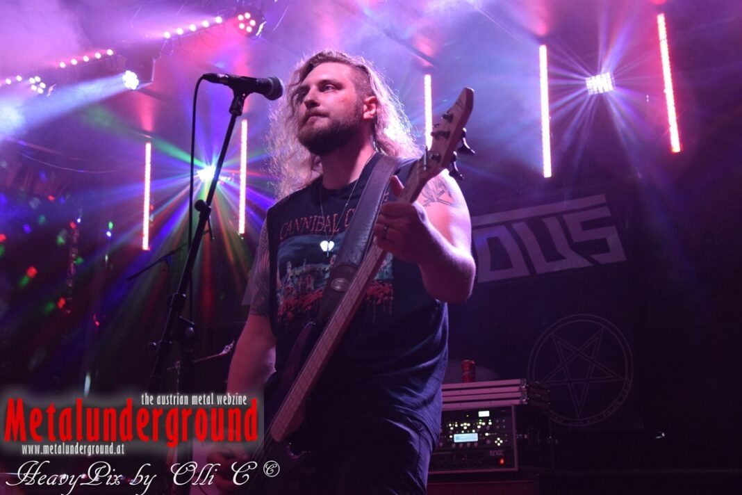Zur Primetime und vor einem gefülltem Publikum, jedoch ohne Drummer, konnten die „Lokalheroes“ RAVENOUS ihr Set aus Thrash `n Speed präsentieren. Auch wenn es nur eingespielte Drums waren, konnten RAVENOUS auf aller Linie überzeugen und hatten das Publikum voll im Griff. Tolle Show.